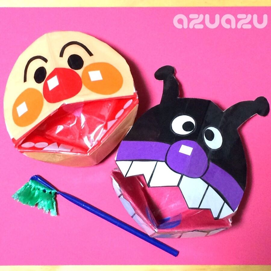 アンパンマン 手作りおもちゃ 牛乳パックでパクパク せかせか しほんちぇりー