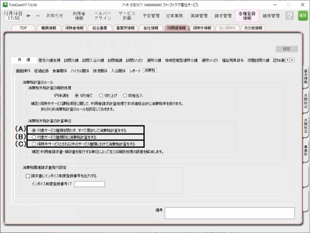 共通 各種登録情報1 消費税計算単位を設定するには Firstcareユーザーサポート