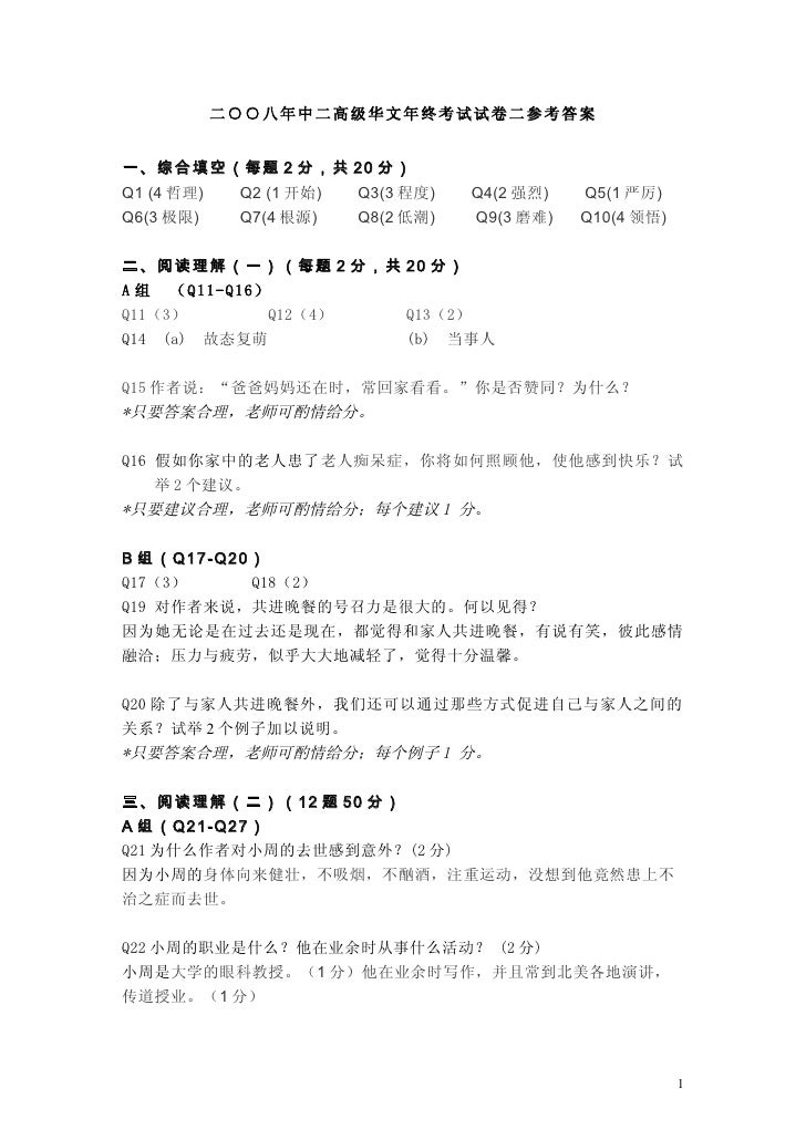 中二华文课文答案