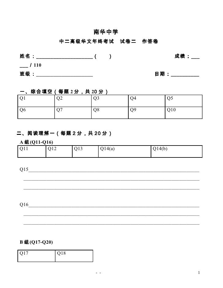 中二第一学期期中考答案 Pages 1 11 Text Version Anyflip