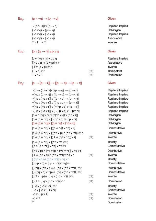 It's just your initial rearrangement where I can't understand how you got to it!. Continued disjunctions, as in for examplep _ q _ p _ r _ q _ q :. Therefore either not p or not r Simplišcation (p∧q) ∴ p p and q are true;.
