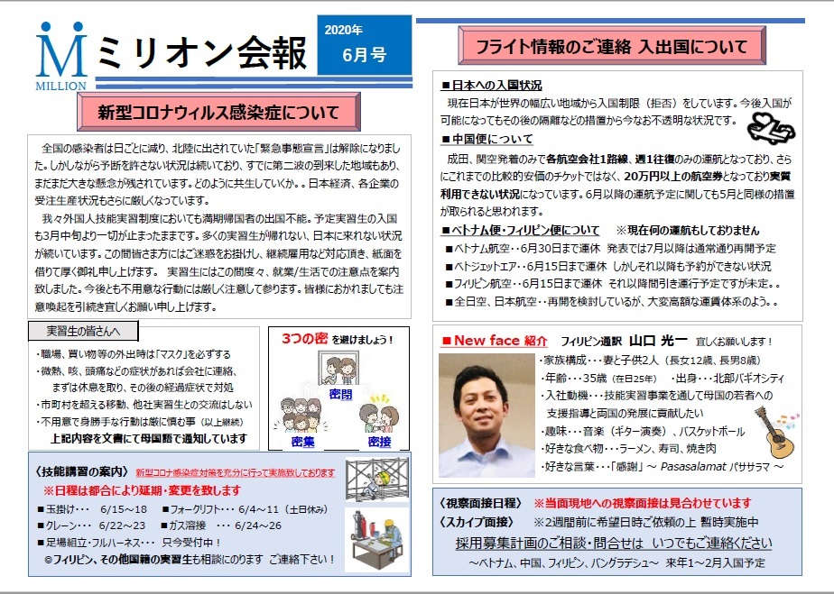 新型コロナウイルス感染症の影響により実習が継続困難となった技能実習生等に対する雇用維持支援について Camel株式会社