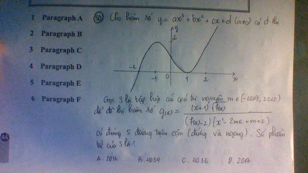 Cho Ham Số Y Ax 3 Bx 2 Cx D A Khac 0 Co đồ Thị Gọi S La Tập Hợp Cac Gia Trị Nguyen M Thuộc 19 để đồ Thị Ham Số G X X 1 Căn F X F X 2 X