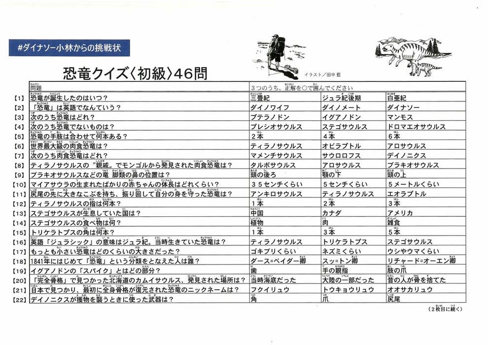 小林快次 恐竜まみれ Official ダイナソー小林からの挑戦状 クイズ 初級 46問の正解はこちらです 難しかった人 迷った人は図鑑や書籍 インターネットでどんどん調べてみてください すらすら解けたという人は 2日後のクイズ 中級 46問出題を