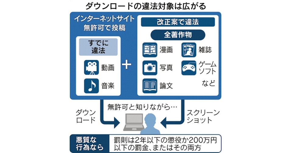 ダウンロード違法化へ スクショも法律違反になる 罰則 処罰 はどうなる