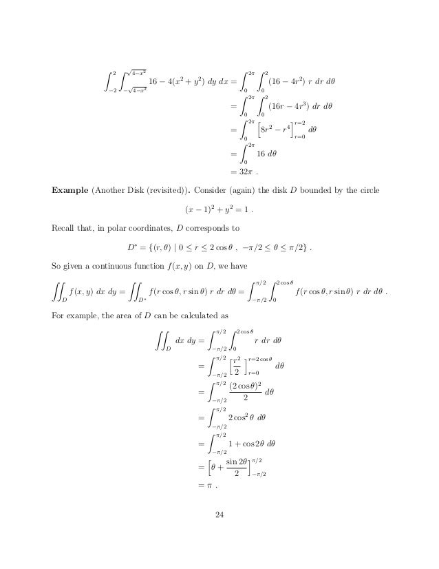 The intersection gives 4 = x2 +y2.Therefore D is a disk of radius 2. Here you can find some graphs plotted with 3D Grapher. Cartesian Cylindrical Spherical Cylindrical Coordinates x = r cosθ r = √x2 + y2 y = r sinθ tan θ = y/x z = z z = z Spherical Coordinates.